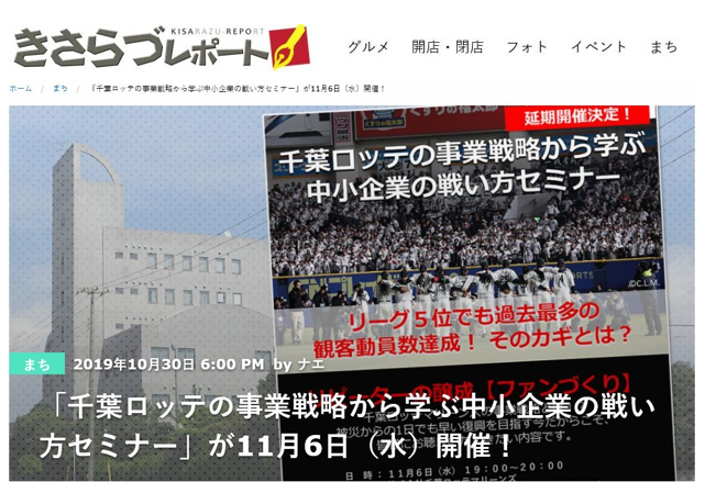 きさらづレポートへのリンク→ https://www.kisarepo.jp/2019/10/30/「千葉ロッテの事業戦略から学ぶ中小企業の戦い/