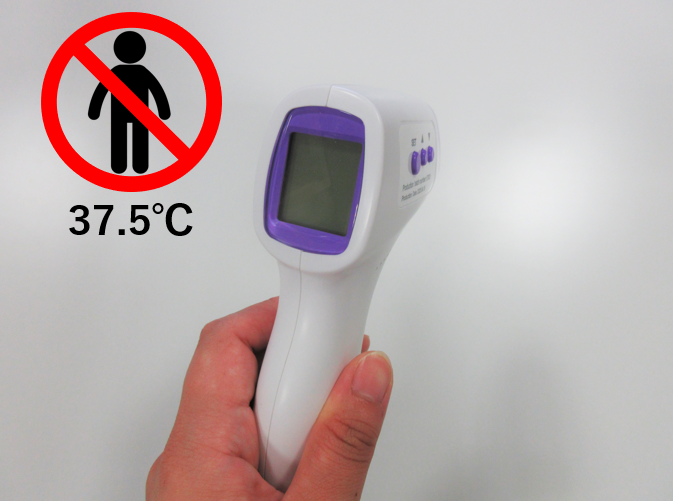 入室前に、非接触型の体温計にて、体温を測らせていただきます。ご協力をお願い致します。