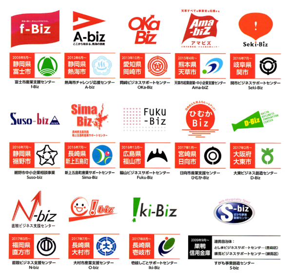 ○各Bizセンターのロゴデザインマーク(2017年8月3日に富士市で開催されたBiz版地方創生会議パンフレット表紙より)