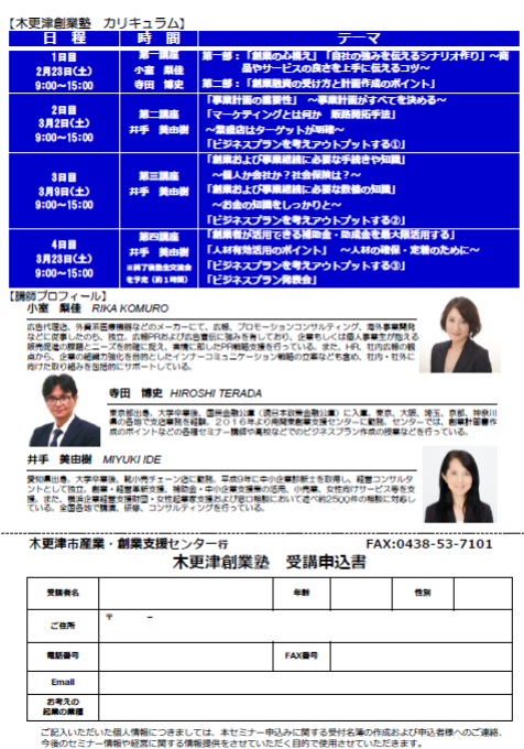 木更津市で創業をお考えの方は是非とも参加をご検討ください。