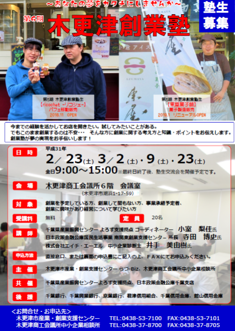 木更津市では第6期「木更津創業塾」を開催いたします。