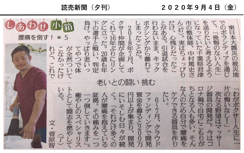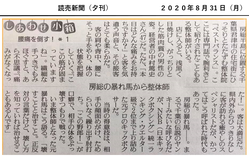 メディア掲載 2020.09.07 2025.08.03 「ベストバランス」様、読売新聞さんに掲載いただきました!【8月31日~9月4日、5日間連続掲載】 概要 「ベストバランス」様、読売新聞さんに掲載いただきました。 > しあわせ小箱(8月31日~9月4日、5日間連続掲載!)