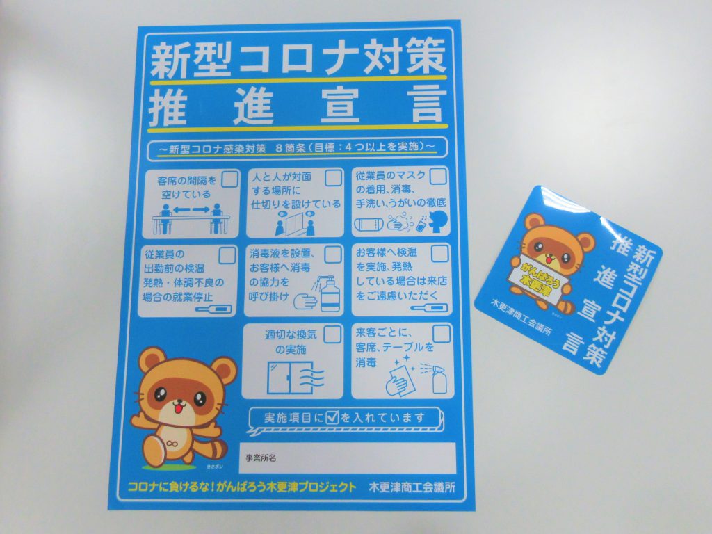 木更津商工会議所から、「新型コロナ対策推進宣言」ポスターとステッカーを送付しています!!
