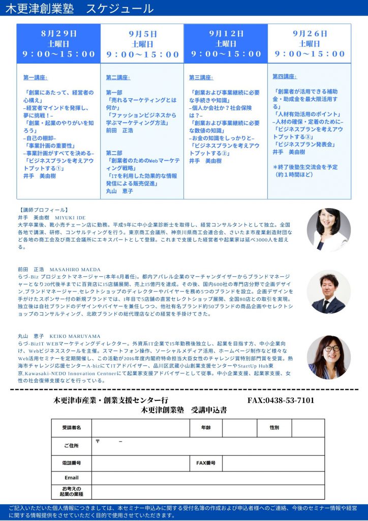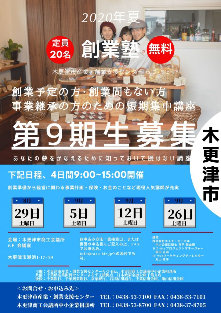 『木更津創業塾』は、創業予定の方・創業間もない方・事業承継の方のための短期集中講座となります。