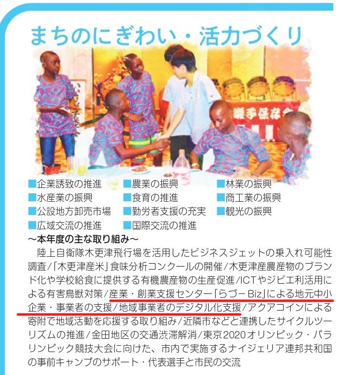 今月の広報きさらづ「まちのにぎわい・活力づくり」でらづBizについて、記載いただいております。