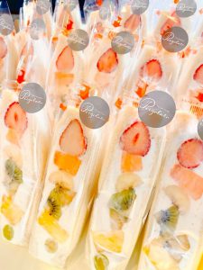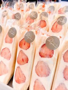 季節のフルーツを丸ごと使用し、クリームチーズを加えた特製生クリームをたっぷり、耳までしっとり食パンに挟んでいます。