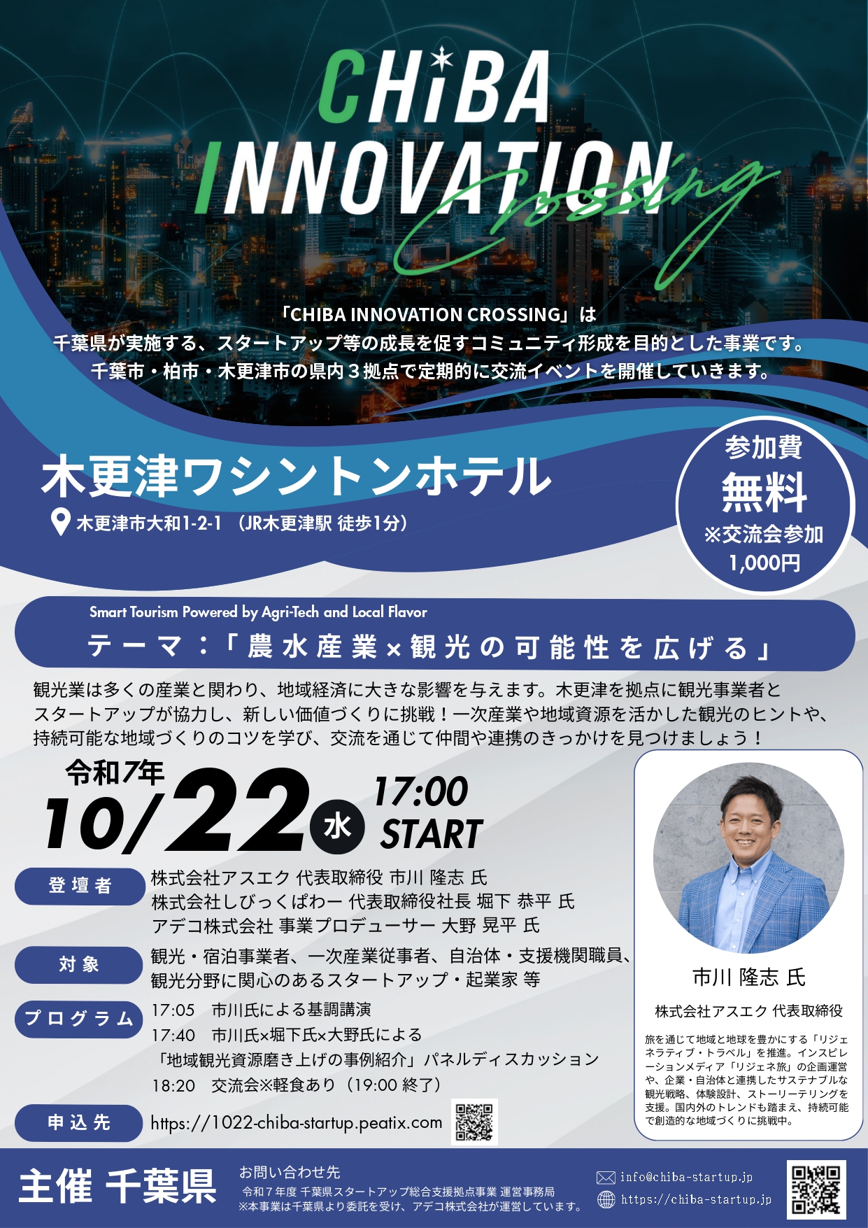 千葉県が主催する「CHIBA INNOVATION CROSSING」が、木更津で開催されます。