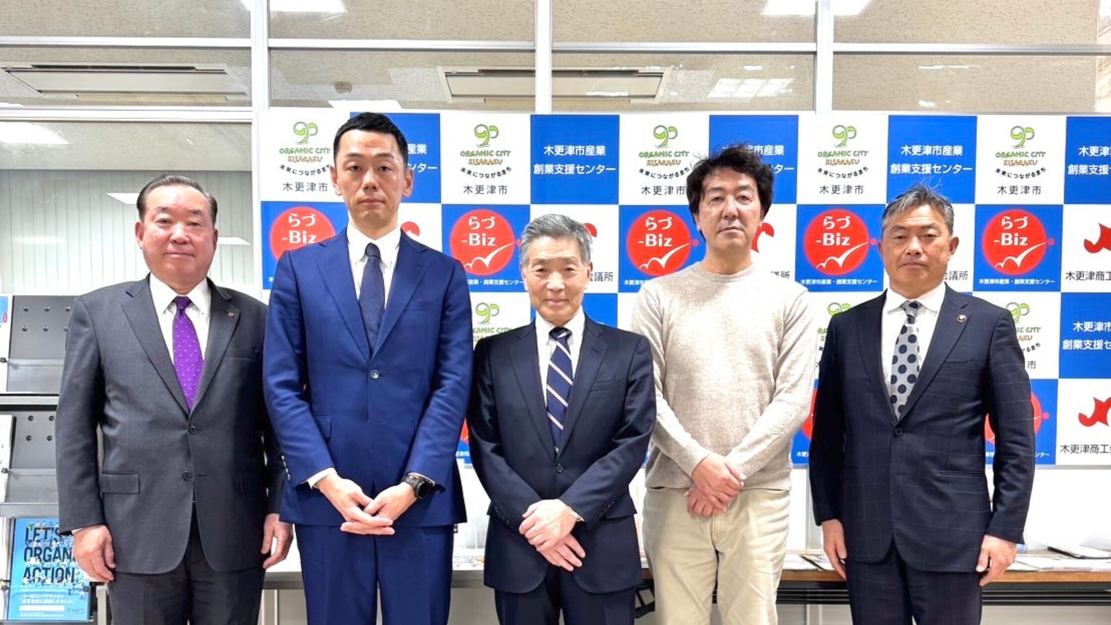 渡辺芳邦 木更津市長、池田庸 木更津商工会議所会頭、ビズモデル創始者の小出宗昭氏をお迎えし、らづBizの活動をご報告をさせていただきました。