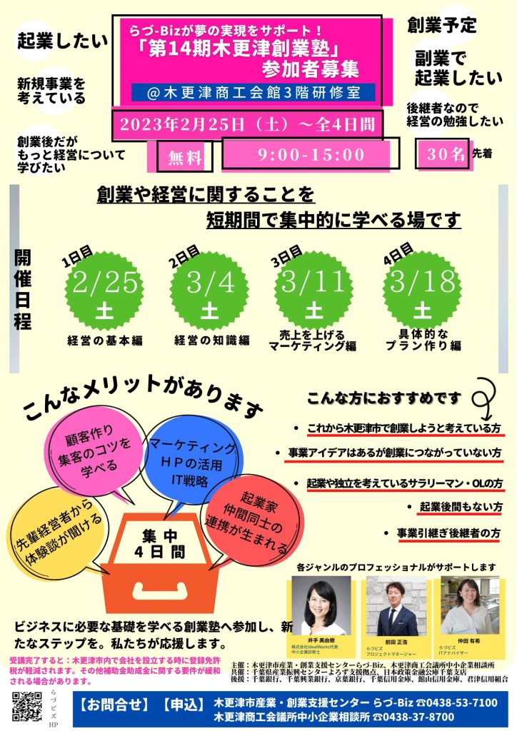 らづBizが夢の実現をサポート!「第14期木更津創業塾」参加者募集