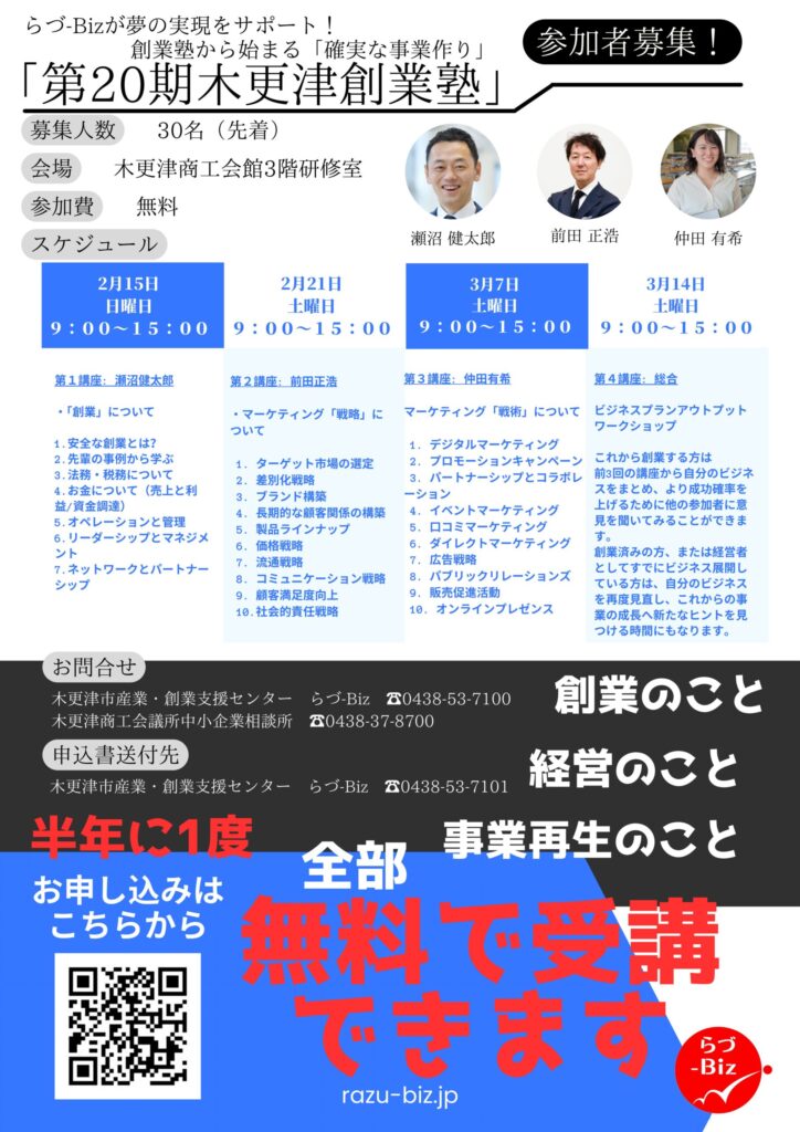 【第20期らづビズ創業塾】2月15日より開催!