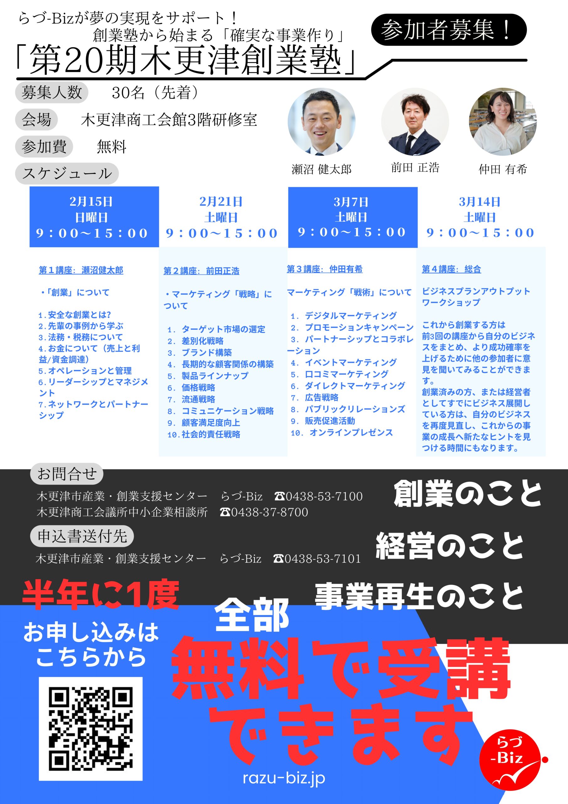 日程:2/15(日)、2/21(土)、3/7(土)、3/14(土) 全4日間